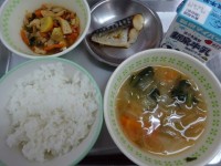 今日の給食は、 ・ごはん ・牛乳 ・野菜たっぷりみそ汁 ・焼きさば ・まぜたら...