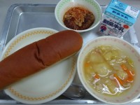 今日の給食は、 ・おさつパン ・牛乳 ・ミネストローネ ・鶏肉のバーベキューソ...