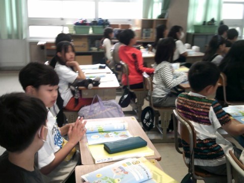 4年3組が外国語活動に