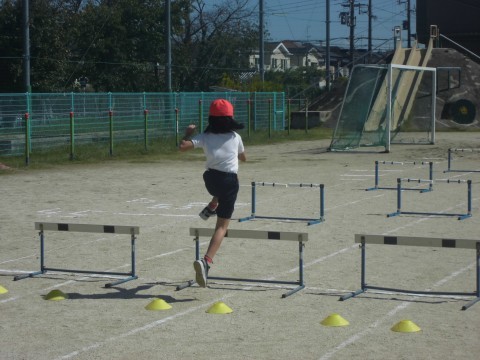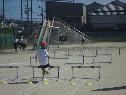 3年生が体育でハードル走に取り組んでいます。ハードルを跳ぶコツはいろいろありますが,ピョンと跳ぶ感じが,走っている感じになっていくといいと考えられています。低く跳ぶってすごい勇気のいることですが,跳ぶのに慣れればぜひチャレンジしてほしいです。