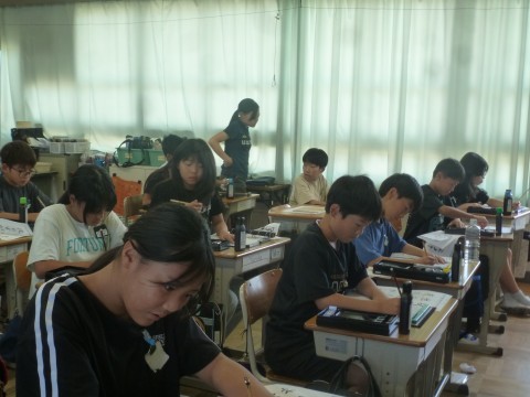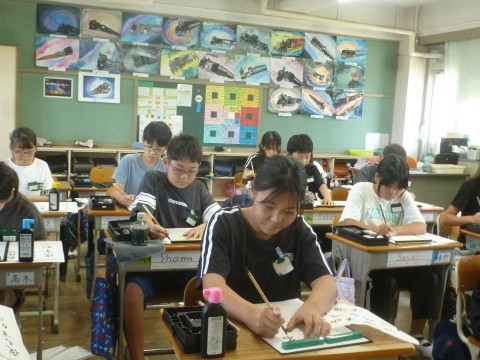 6年1組が書写の学習で