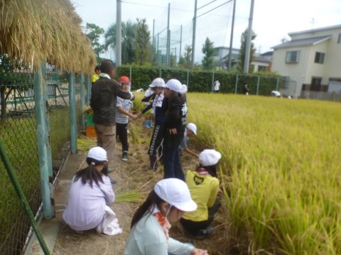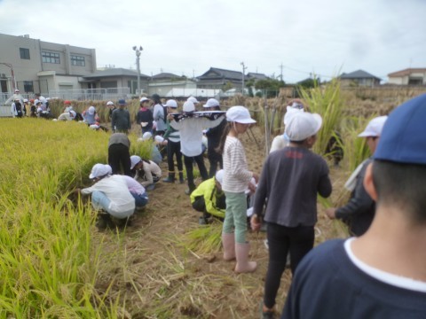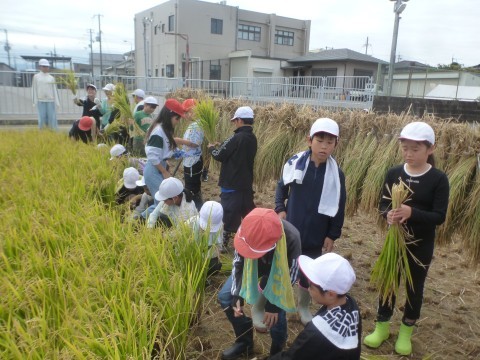 今日は1学期に田植えをした稲刈り!