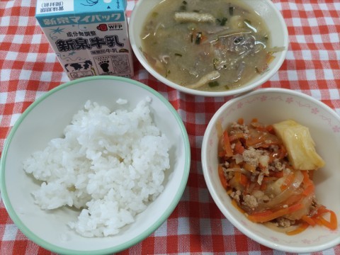 『豚汁』『揚げじゃがのそぼろかけ』にご飯・牛乳です。