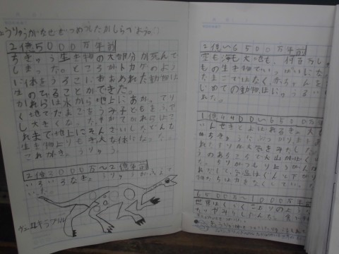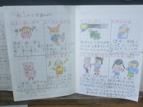 これ,3年生の自主学ノートの一部です。「ことわざ」に「グラタン」,「恐竜」・・すごく上手にまとめていますよね♪