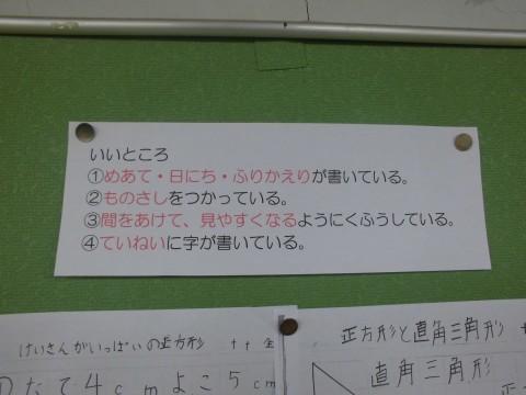 いいところを具体的に示してもらっているので,他の子も負けないように切磋琢磨しながらどんどん素敵なノートを作っていくことでしょう♪