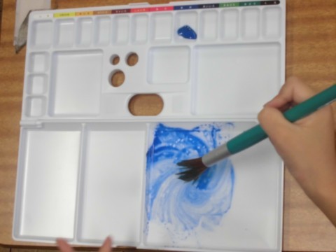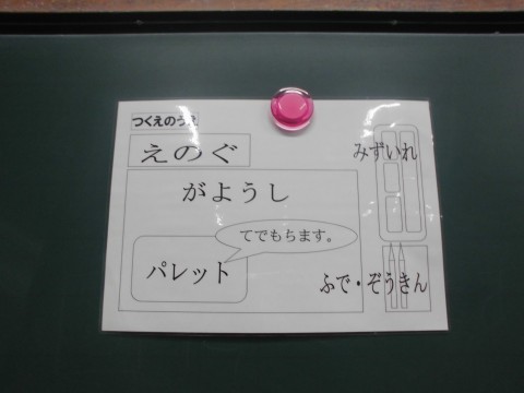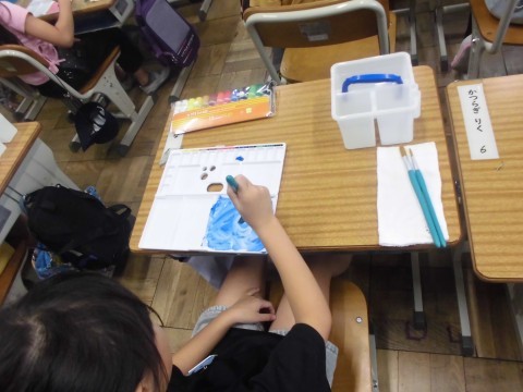 1年生が絵の具を手にし、これから色んなものを表現していきます!楽しみだ―!!
