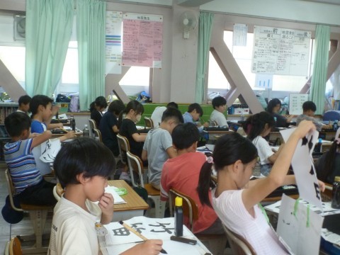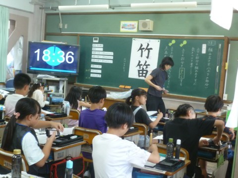 4年1組が書写の学習で
