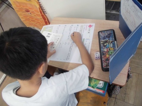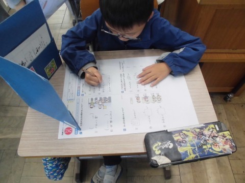 みんな集中して机に向かい,テストに取り組んでいます。わからないことがあってもあきらめずしっかり考える習慣をつけることが大切です。