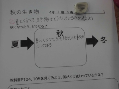 同じく4年生。すっかり涼しくなった今だからこそ考えられる「生き物の秋」。