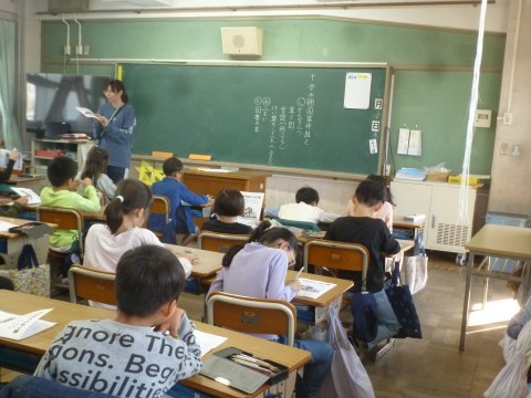 校外学習の説明を聴いています!