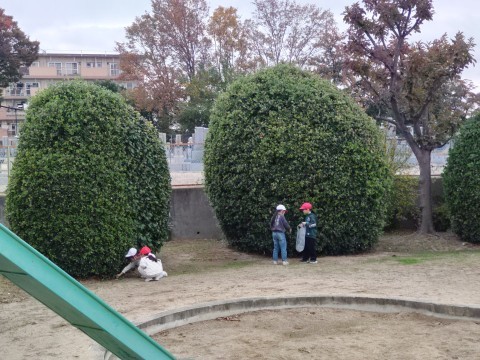 葉やどんぐりの実など、秋を探します。2年生、しっかりリードしてあげてね🎶