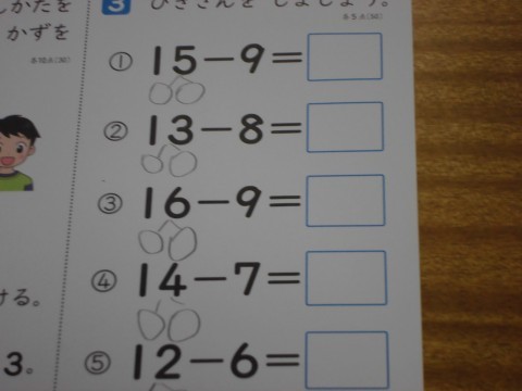 1年生の算数では、2けたー1けたの引き算の学習がゴールに近づいています。