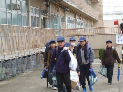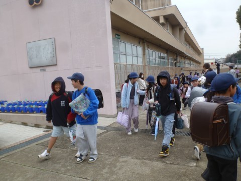 子どもたちは多くの先生方に見送られて