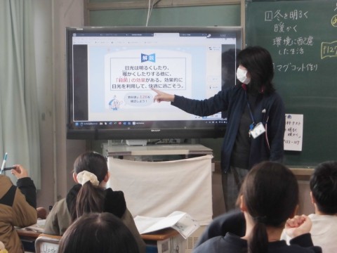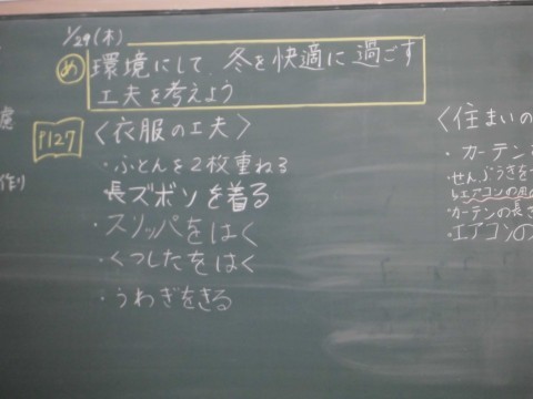 6年生は家庭科で冬の生活をより快適に過ごすための工夫を学んでいます。