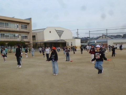 今日は高学年の人たちのなわとび朝会です!