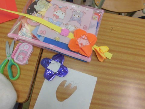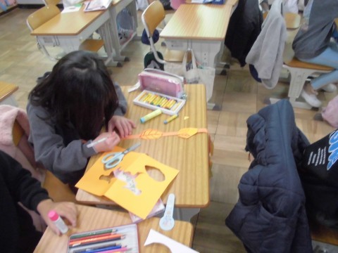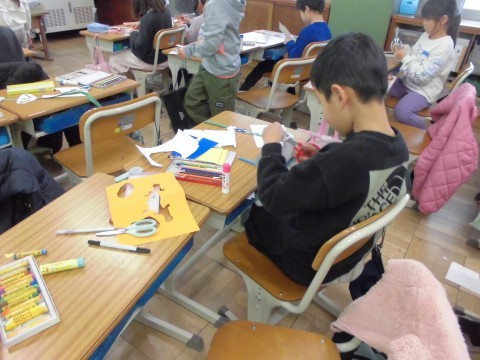 1年生が図工で飾りづくりをしています。