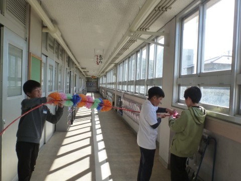 5年生が花のアーチづくりに