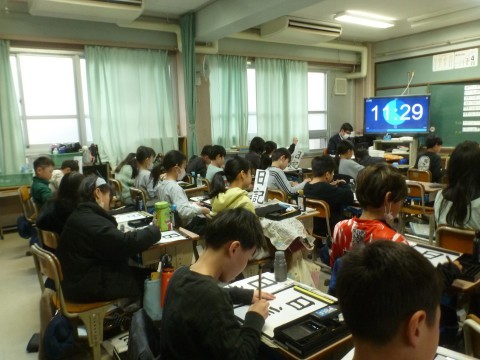 4年3組が書写の学習で