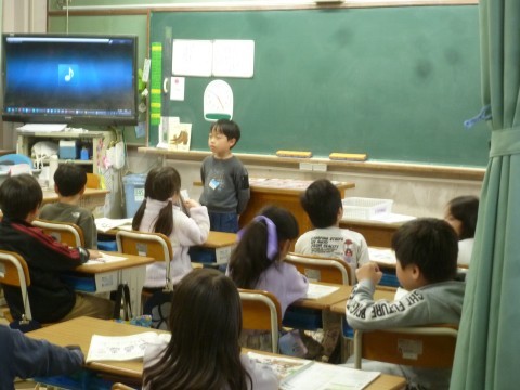 1年3組が音楽の学習で