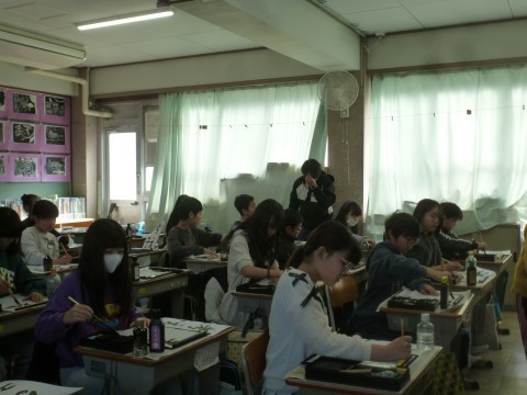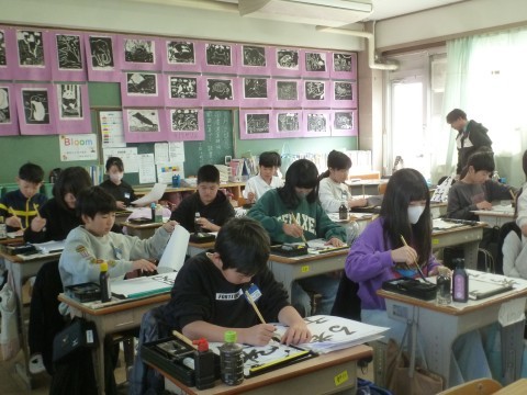 5年1組が書写の学習で