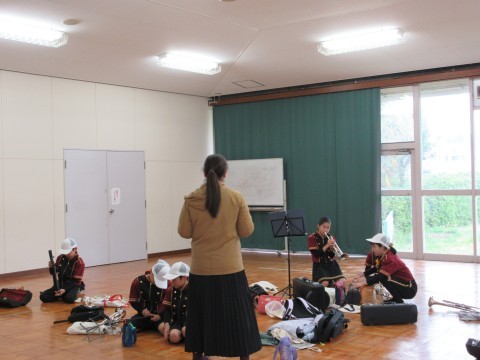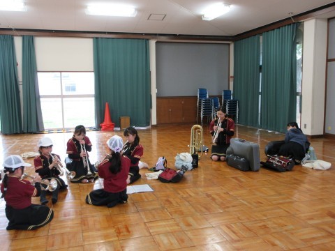 朝早くから平岡鼓笛隊の人たちが