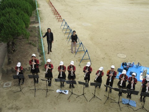 平岡鼓笛隊の人たちが