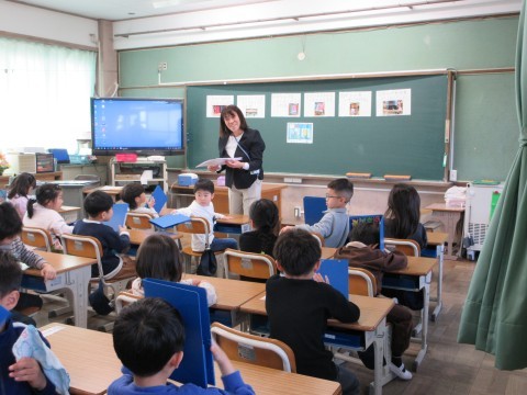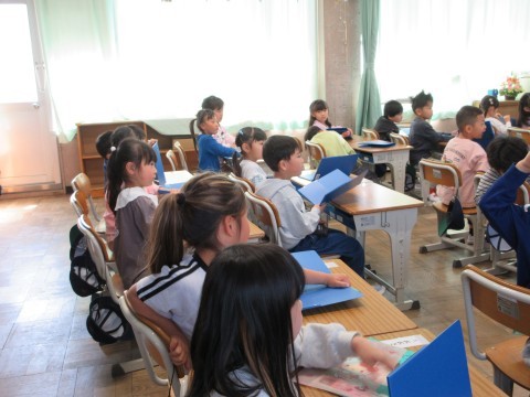 1年2組がプリントを配っています!