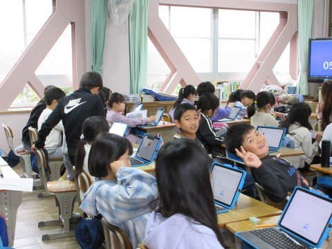 4年1組がタブレットの