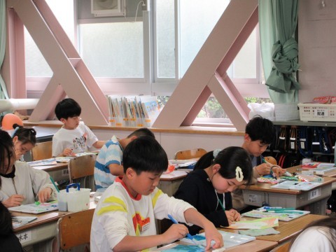 4年2組が図工の学習で