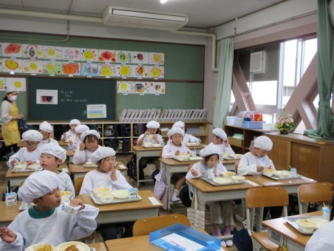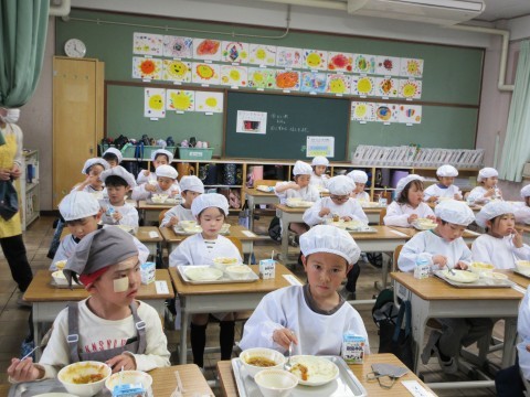 小学校生活初めての給食!