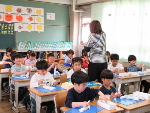 1年2組が図工の学習で