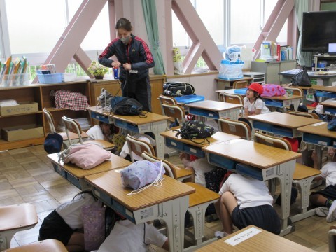 広い学校での初めての訓練!