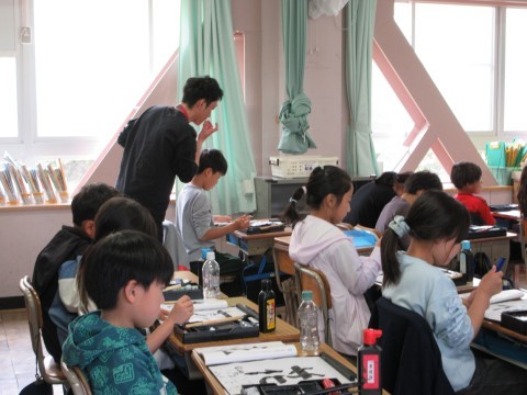 4年2組が書写の学習で