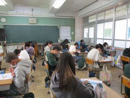 1組は理科。「ものが燃える仕組み」テスト。テストで高得点を取ることは大事ですが、この仕組みを知って生活に役立てるようにしましょう。