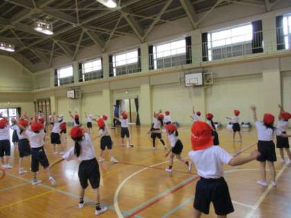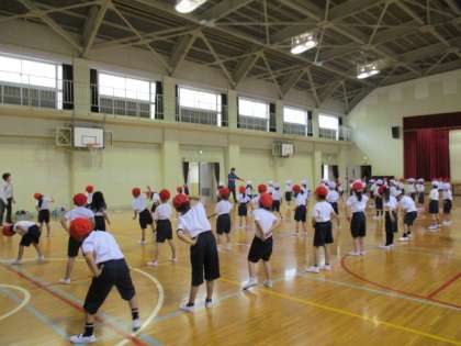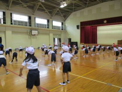 今日は、参観当日の準備運動としてラジオ体操をするので、その練習をしました。