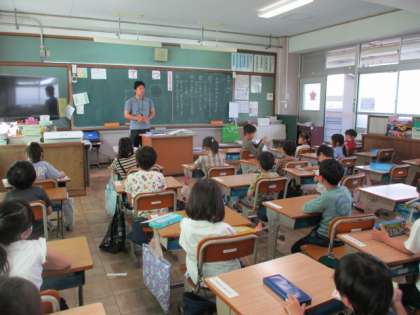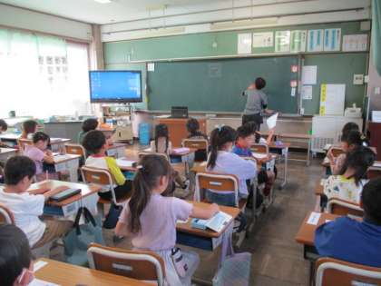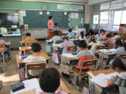 全学級とも国語。ひらがな「つ」「て」の練習。「つ」「て」を使うどんな言葉を知っていますか。