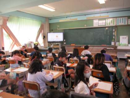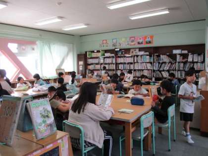 1組は図書。本を借りていました。たくさん読んでくださいね。