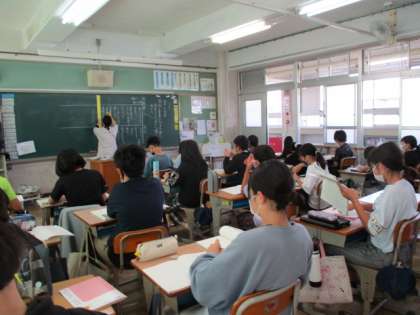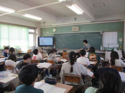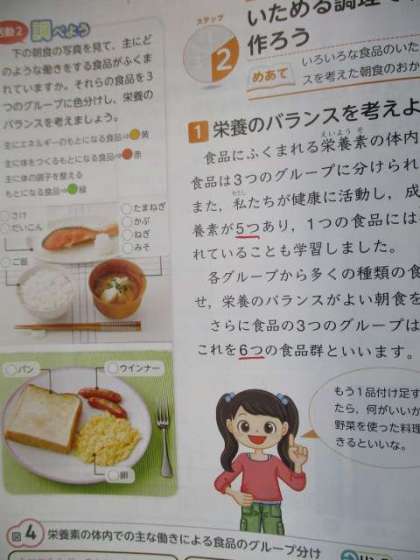 1組は家庭科。単元名:朝食から健康な1日を。めあて:朝食の役割を考えよう。