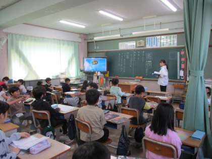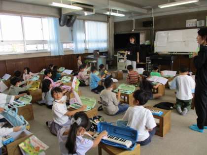 3組は音楽。鍵盤ハーモニカで「すいかのめいさんち」の練習をしていました。