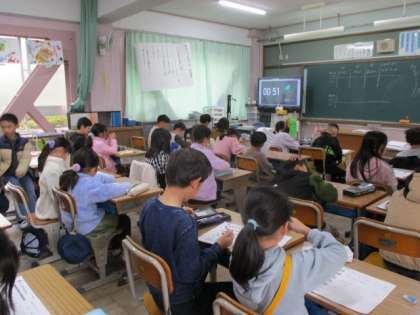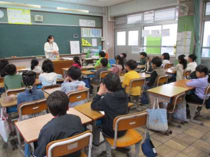 2組は学級指導。朝礼で、「みんなちがっていい」のだから、人の見た目の特徴などについてからかったり、悪口を言ったりしてはいけないと話しました。そのことについて学級でも指導していました。