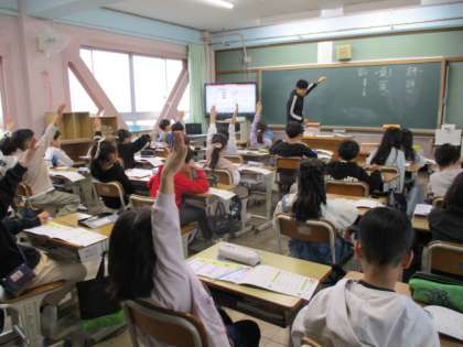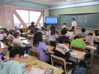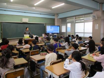 3組は学級指導。学習で使う道具を置く場所などについての話を聞きました。