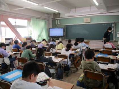 1組は国語。教材名:白い帽子。どんな物語でしょうか。