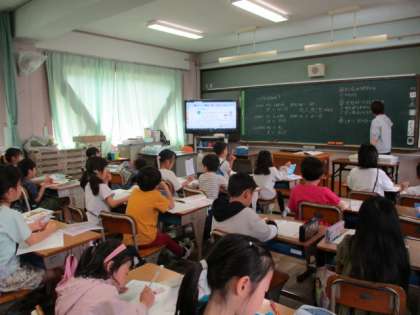 1組は算数。単元名:グラフと表。めあて:もっと詳しく調べよう。