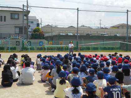 校長先生のお話では「おはしも」を守ることや、「近所の人に挨拶をしましょう」と話がありました。普段から近所の人とあいさつをして顔を知っていることでお互いに助け合うことができるからです。この機会に家でも地震や津波の対策について振り返ることができるといいですね。