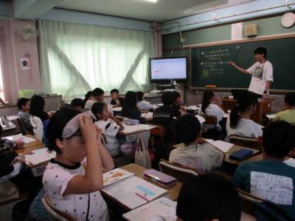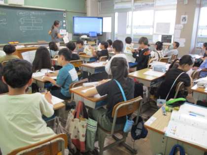 学年算数。単元名:わり算や分数を考えよう。めあて:80mの1/4の長さを計算で求める方法を考えよう。