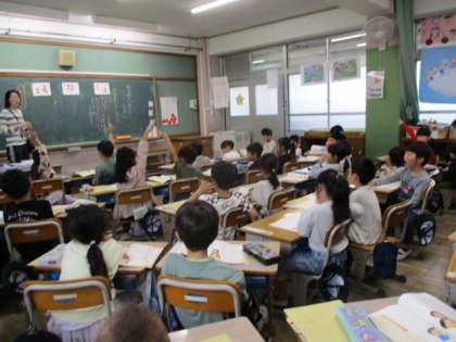 2組は道徳。教材名:わすれていること、なあい?挨拶の大切さについて考えます。みなさんはよく挨拶できますね。近所の方にもできていますか。