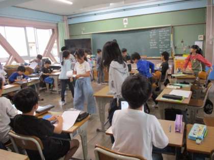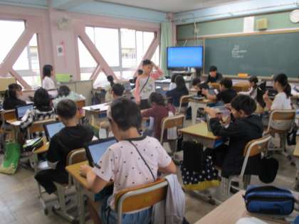 2組は算数。「わり算」練習プリントの返却。大きな数のわり算の計算を確実に解くためには、九九を基本にしたわり算を正確に解けないと苦しいですね。その計算ができれば、大きな数の計算もへっちゃらです。