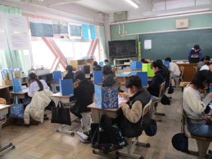2組は国語。「もしものときにそなえよう」テスト。読み取りは大体できるのですが、裏の言葉の方が苦手と言う人も多いです。