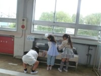 1年2組が図工で絵の具を使って後片付けに取り組んでいます!最後の最後まで手洗い場...
