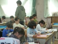 1年2組が国語の学習で「じどう車くらべ」という説明文のまとめで自分の自動車図鑑を...